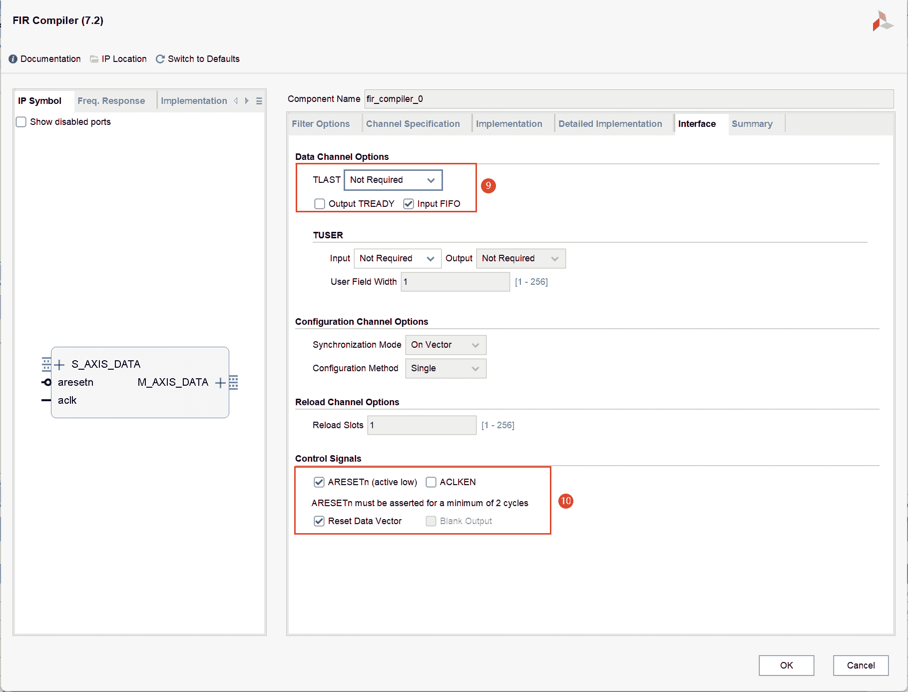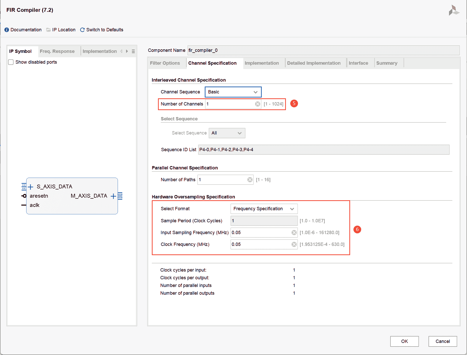 | ① | 模块名称 | 自定义 | fir_compiler_0 |